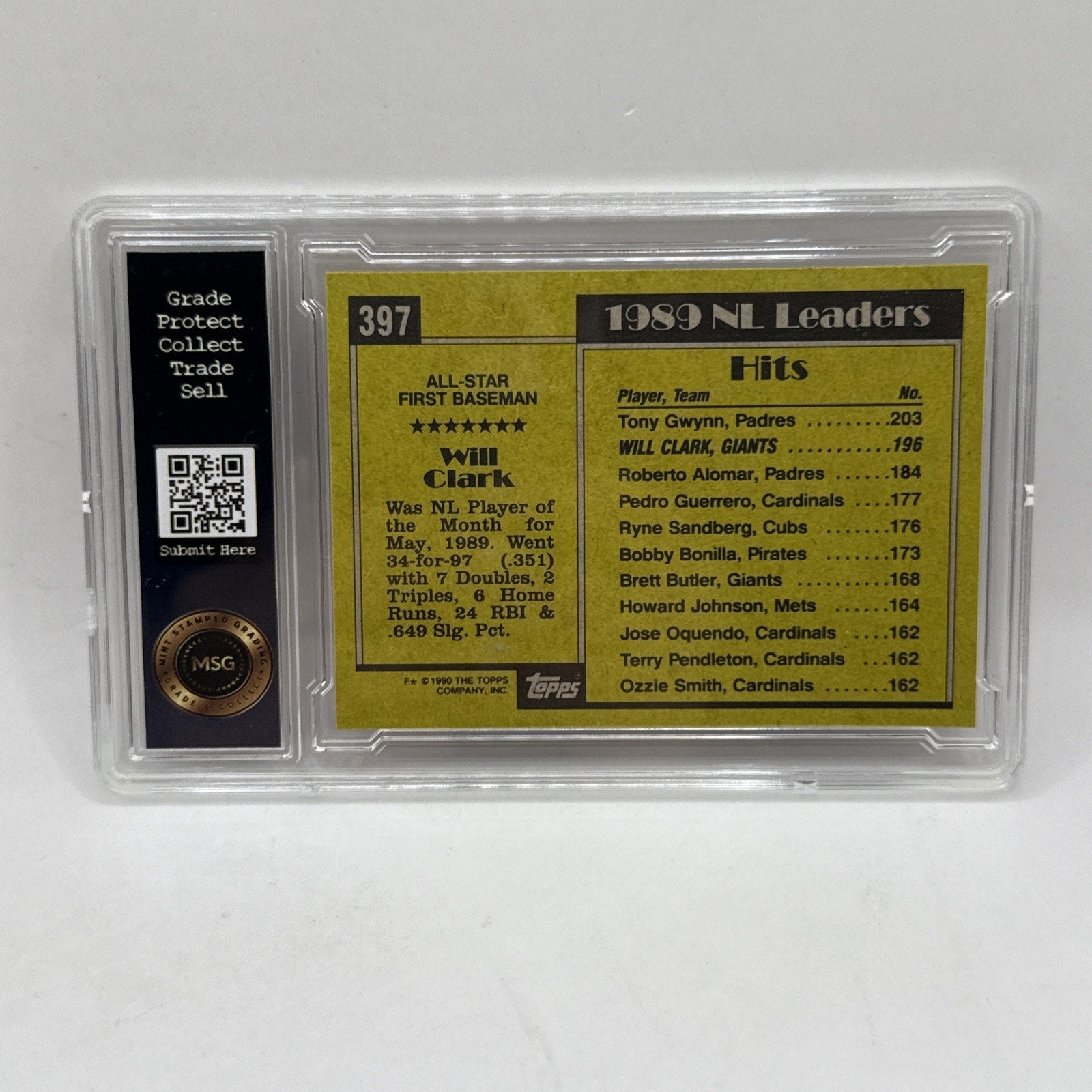 1990 Topps #397 Will Clark All Star San Fransisco Giants Graded 7 MLB Card