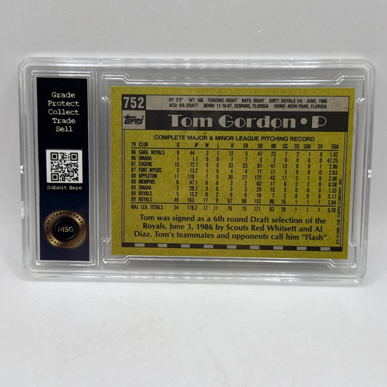 1990 Topps Tom Gordon Gold Cup All-Star Rookie Card Graded 7 Vintage Collectible