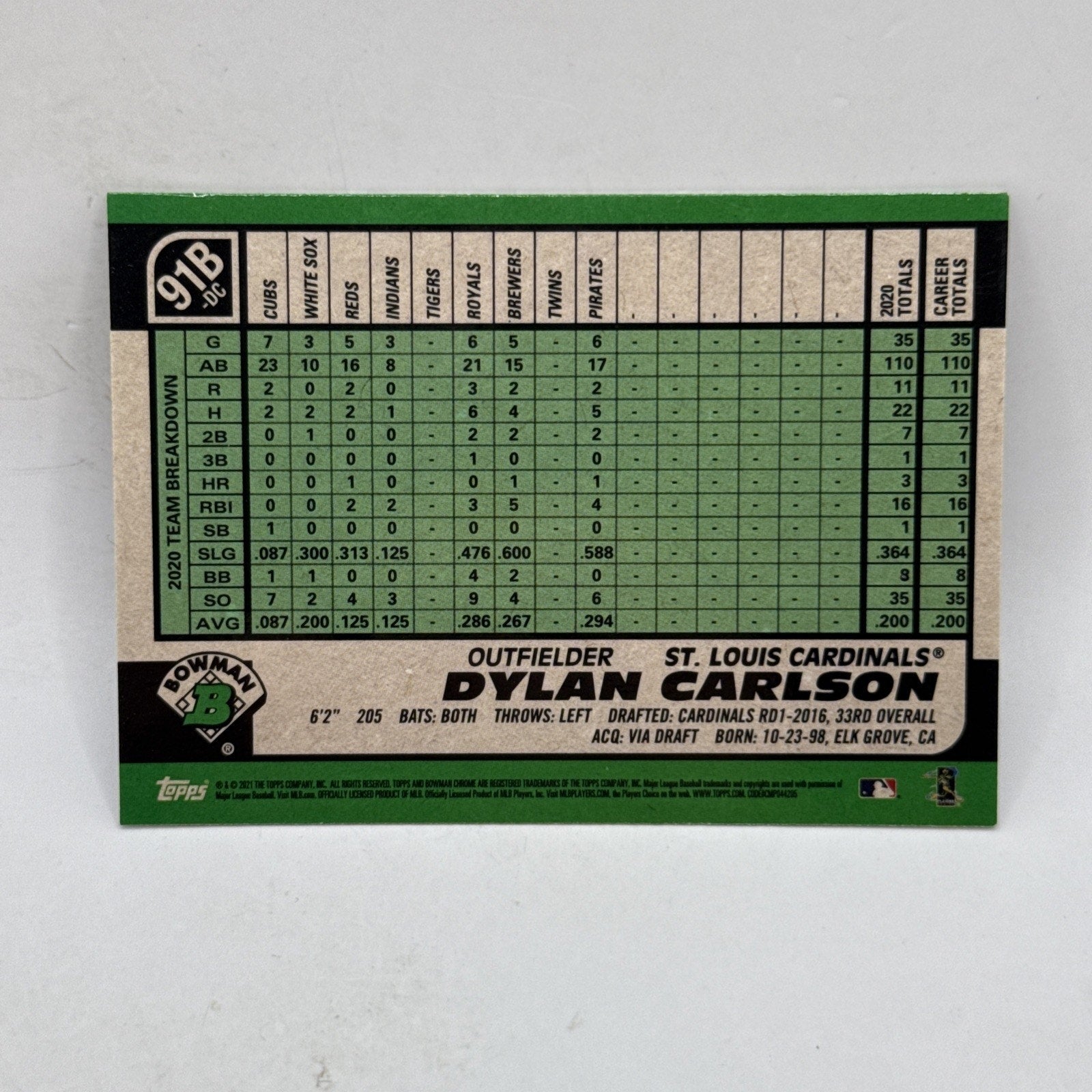 2021 Bowman Chrome Dylan Carlson 1991 Refractor Rookie Card RC #91B-DC Cardinals