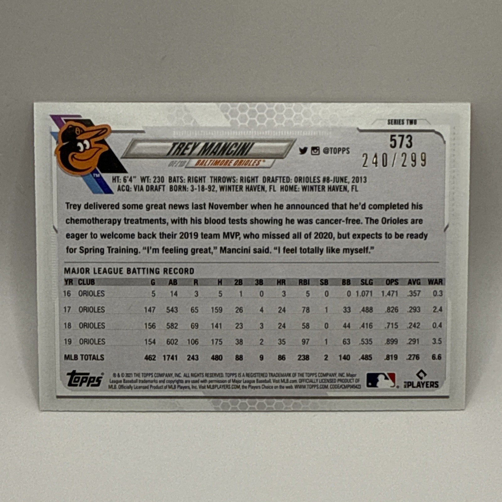 2021 Topps Series 2 Trey Mancini Baltimore Orioles Insert Orange Foil /299