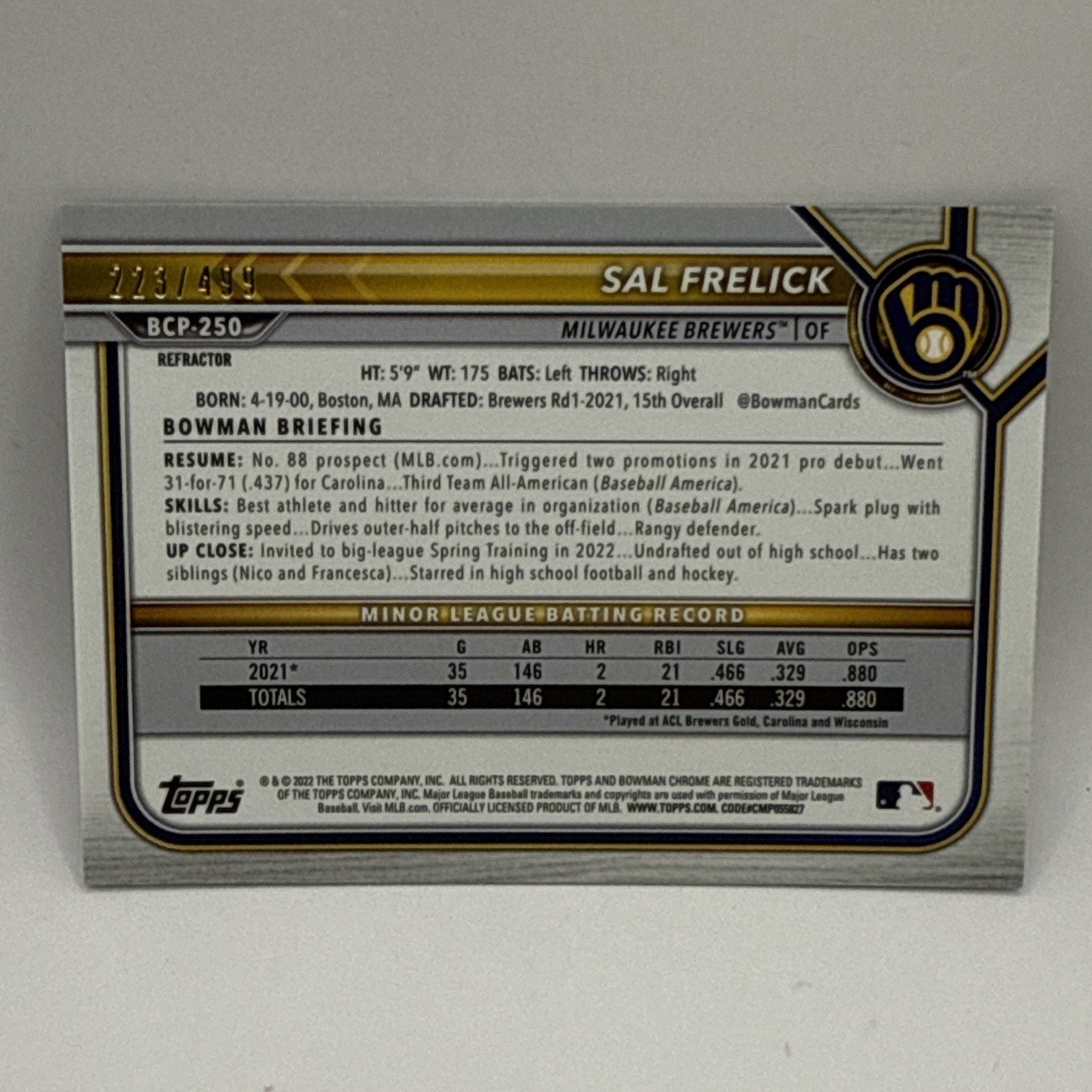2022 Bowman Chrome Sal Frelick /499 Refractor #BCP-250 MLB Brewers