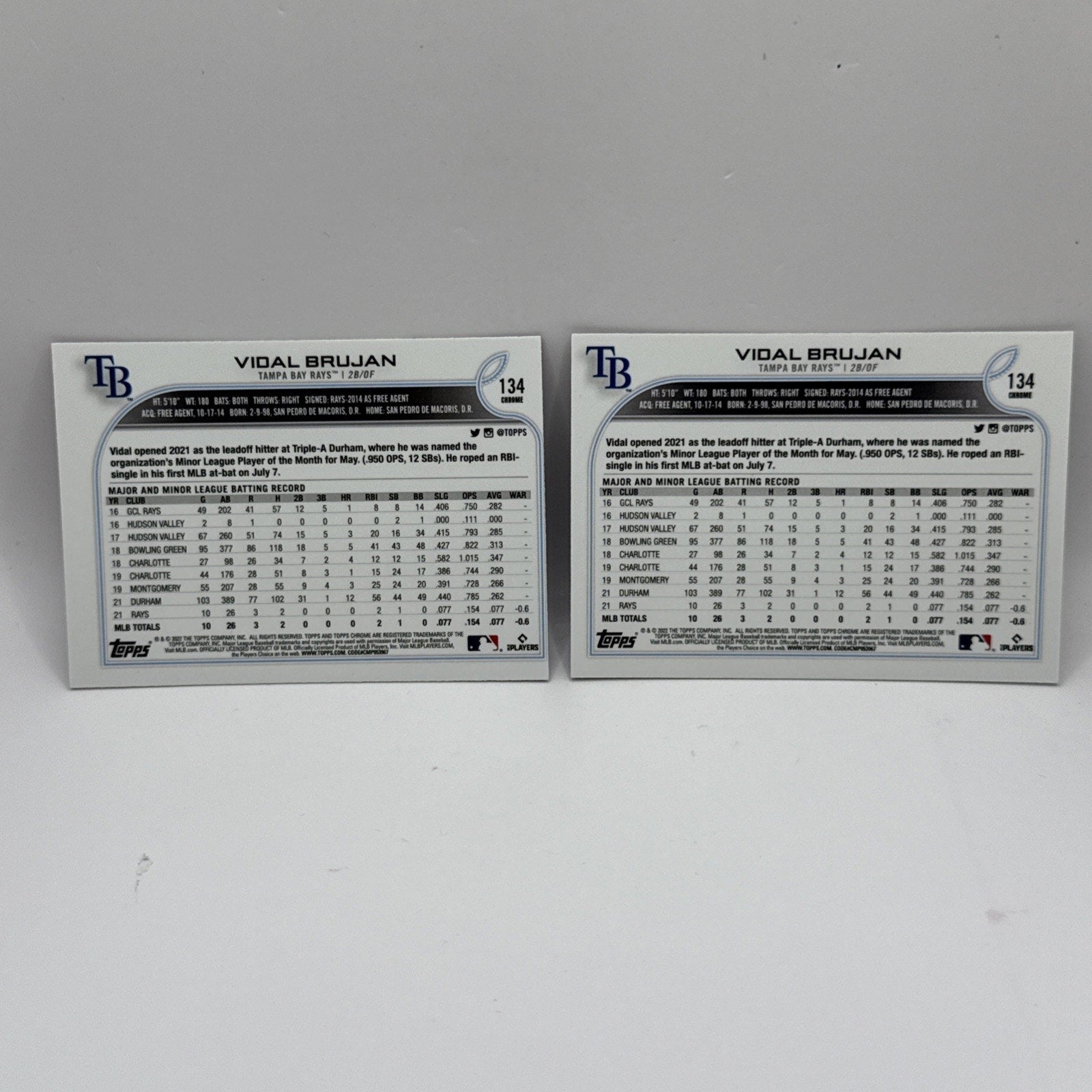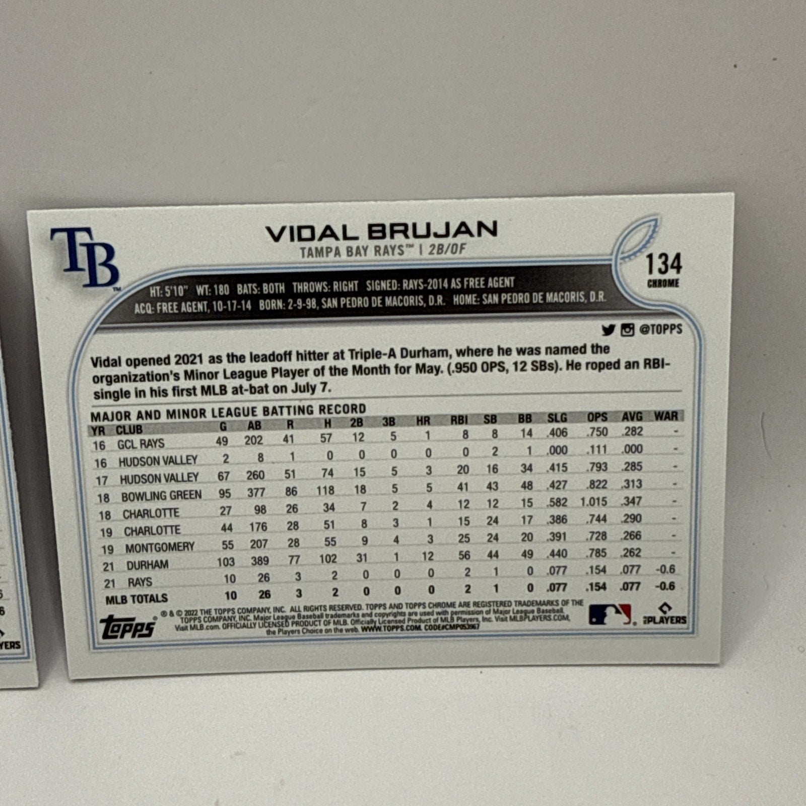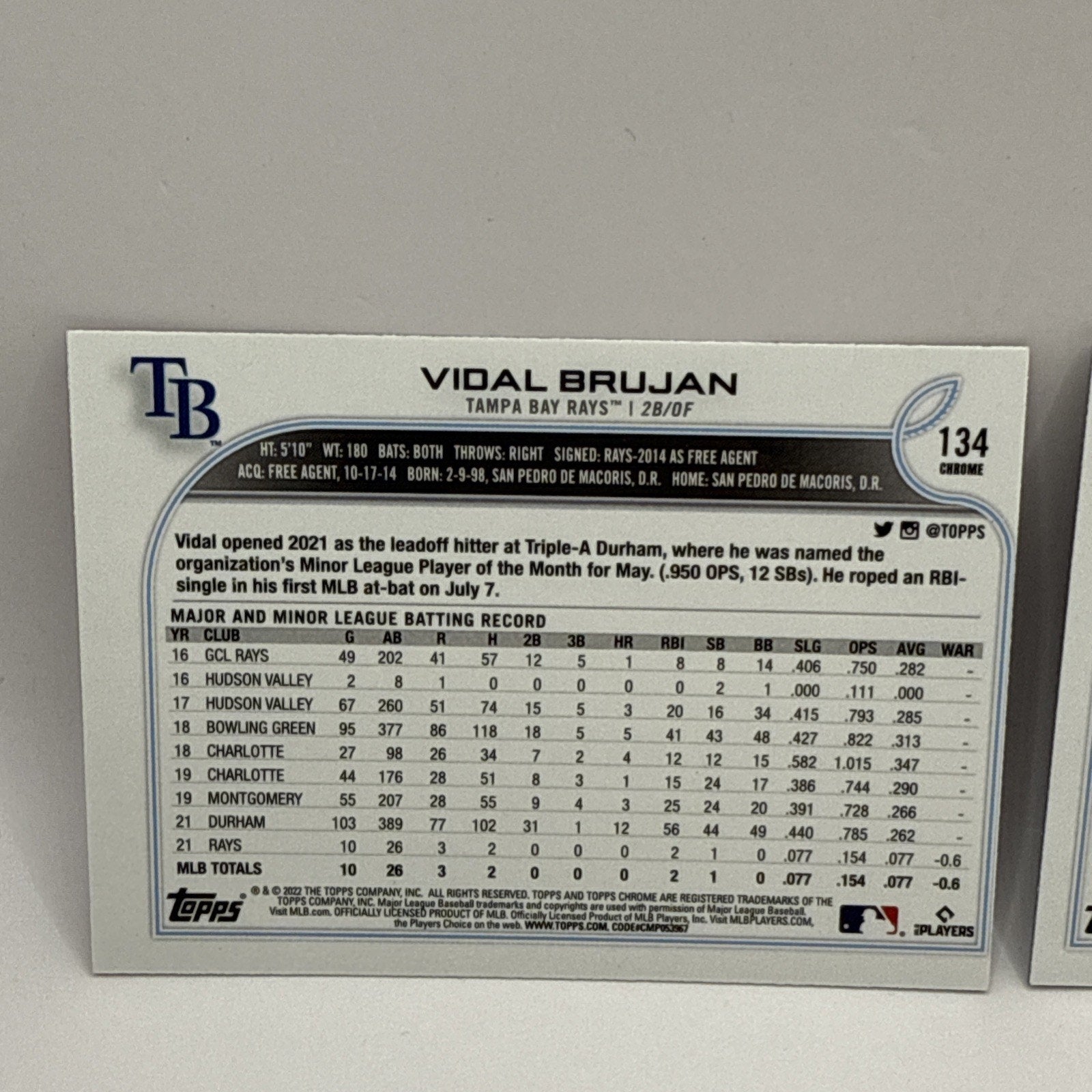 2022 Topps Chrome Vidal Brujan Pink Refractor #134 Tampa Bay Rays MLB