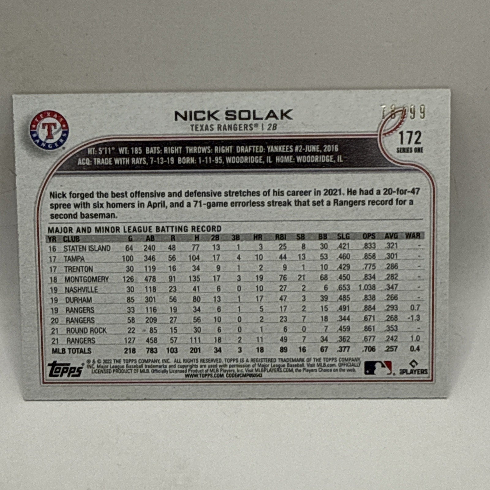 2022 Topps Series 1 Vintage Stock Nick Solak #172 Texas Rangers /99 MLB Rangers