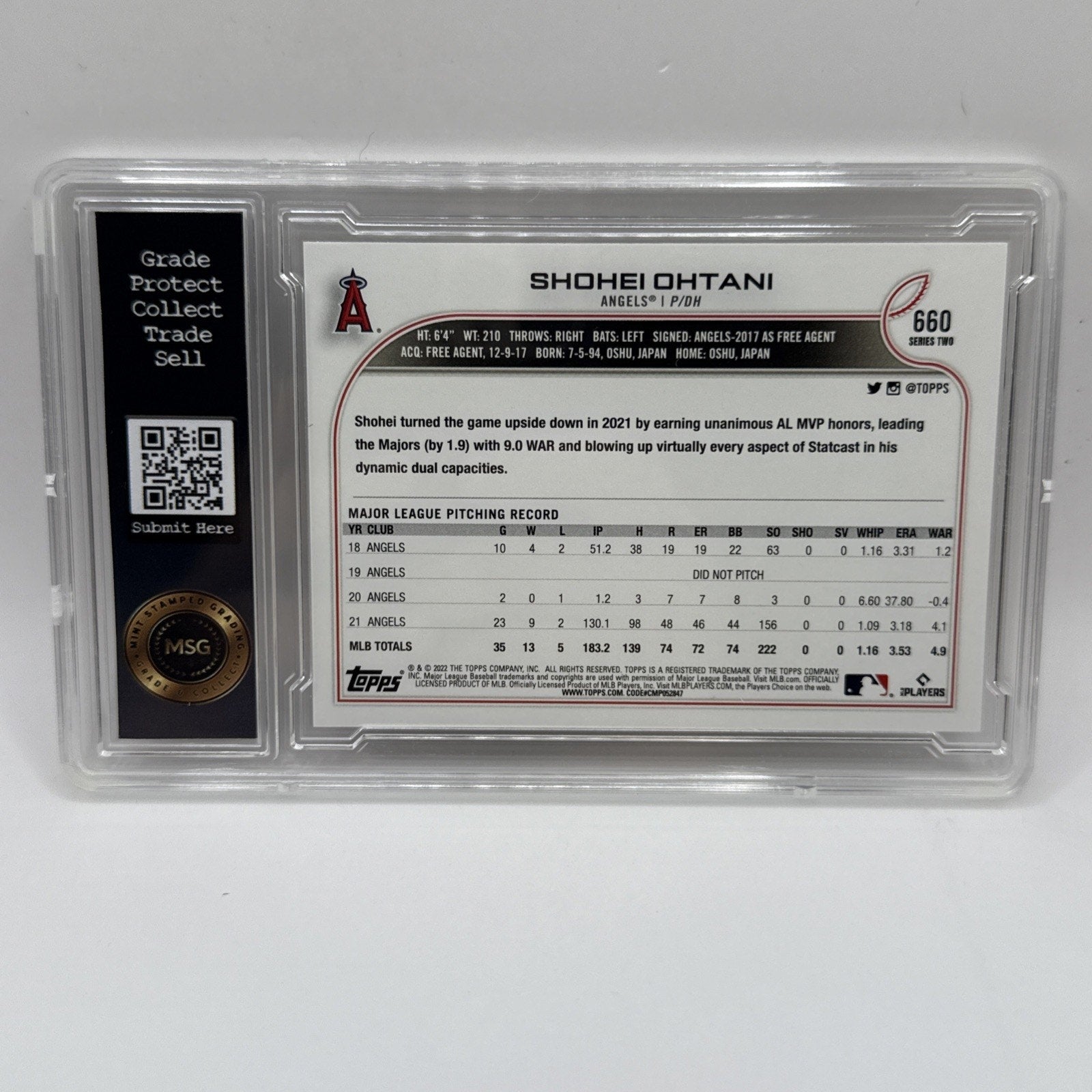 2022 Topps SHOHEI OHTANI #660 GRADED 10 GEM MINT MLB ANGELS