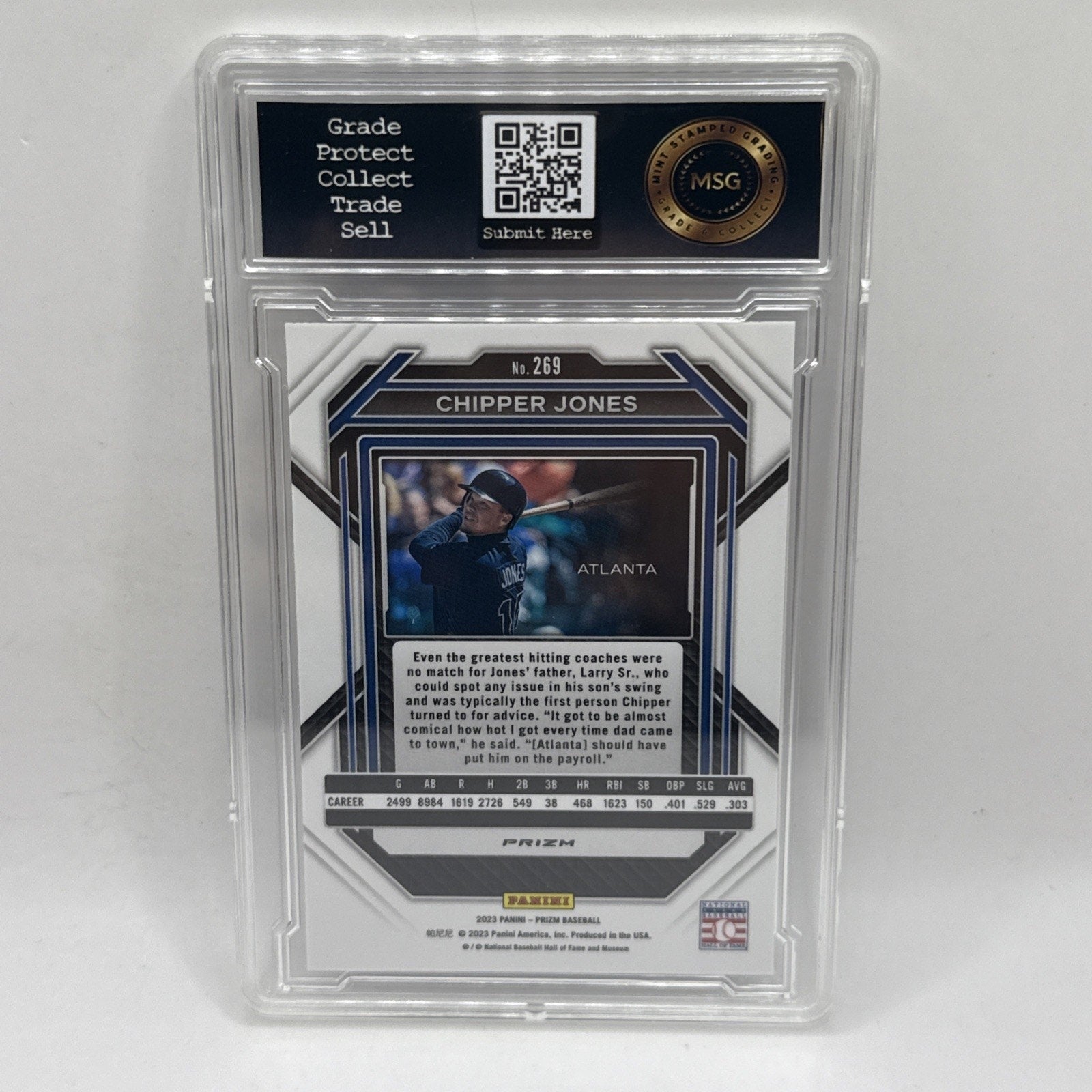 2023 Panini Prizm - Chipper Jones #269 Blue Ice Prizm MLB Graded 10 Gem Atlanta