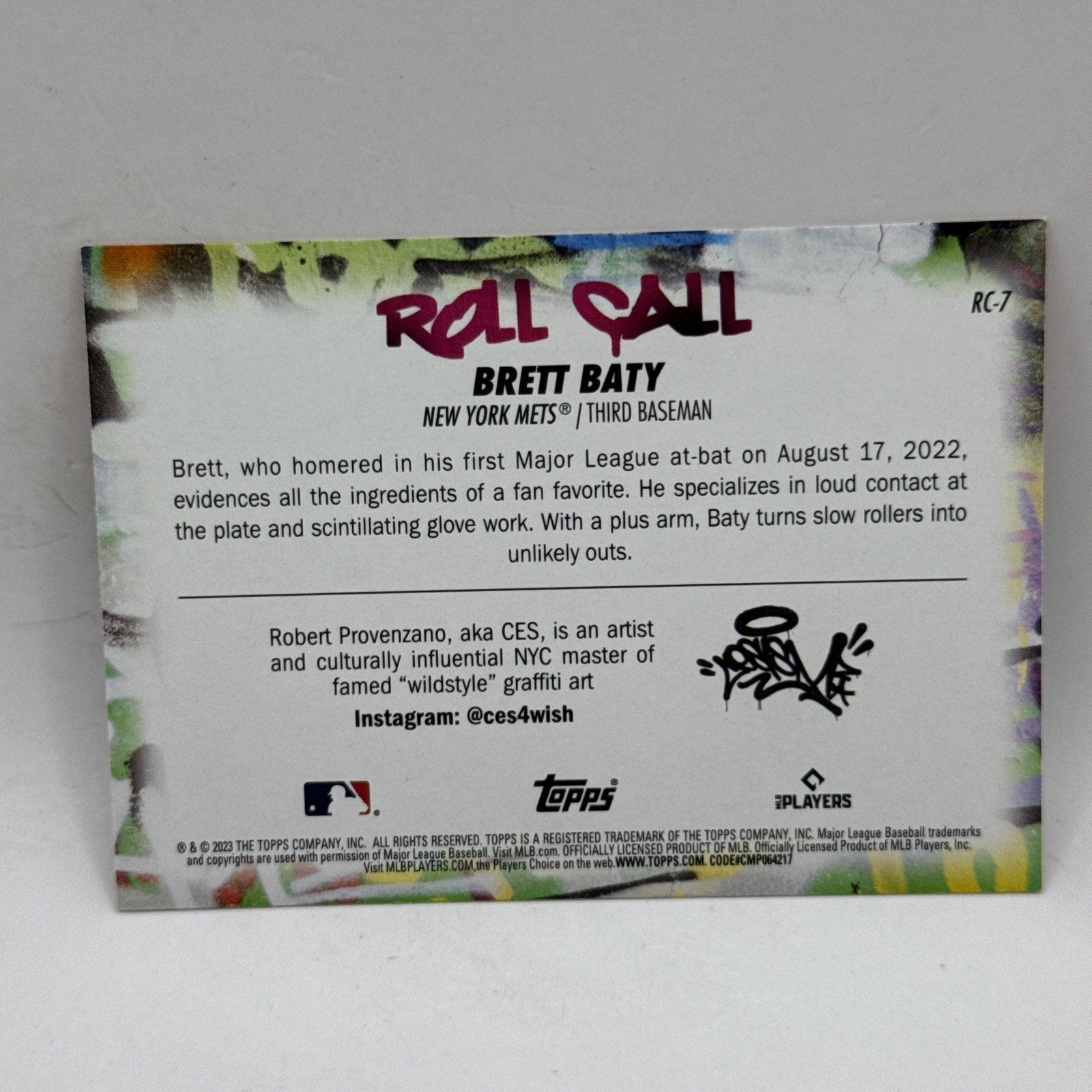 2023 Topps Big League Brett Baty RC Rookie Hello My Name Is Roll Call RC-7 Mets