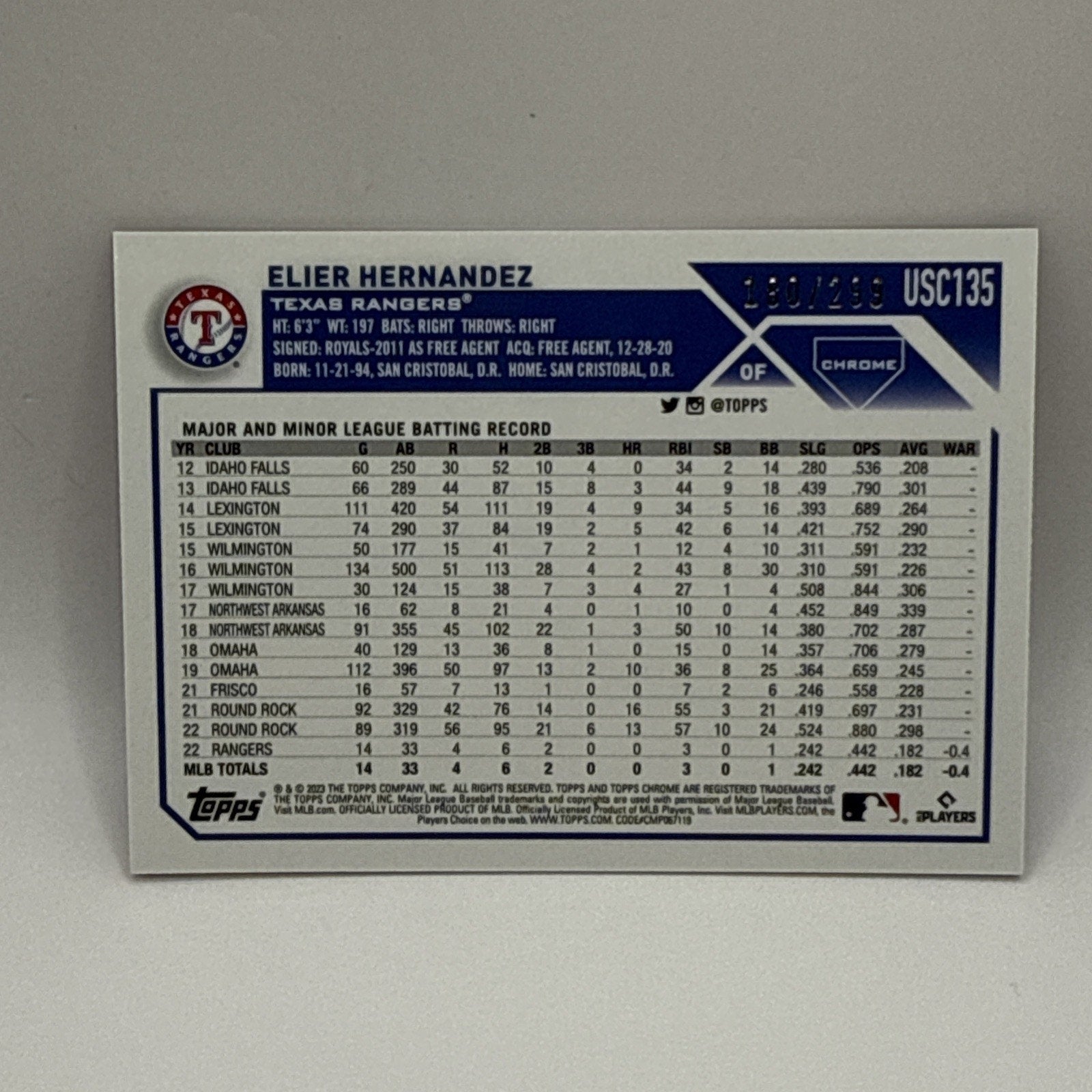 2023 Topps Chrome #USC135 Elier Hernandez Magenta/Purple Lava Lamp #/299 (JB)
