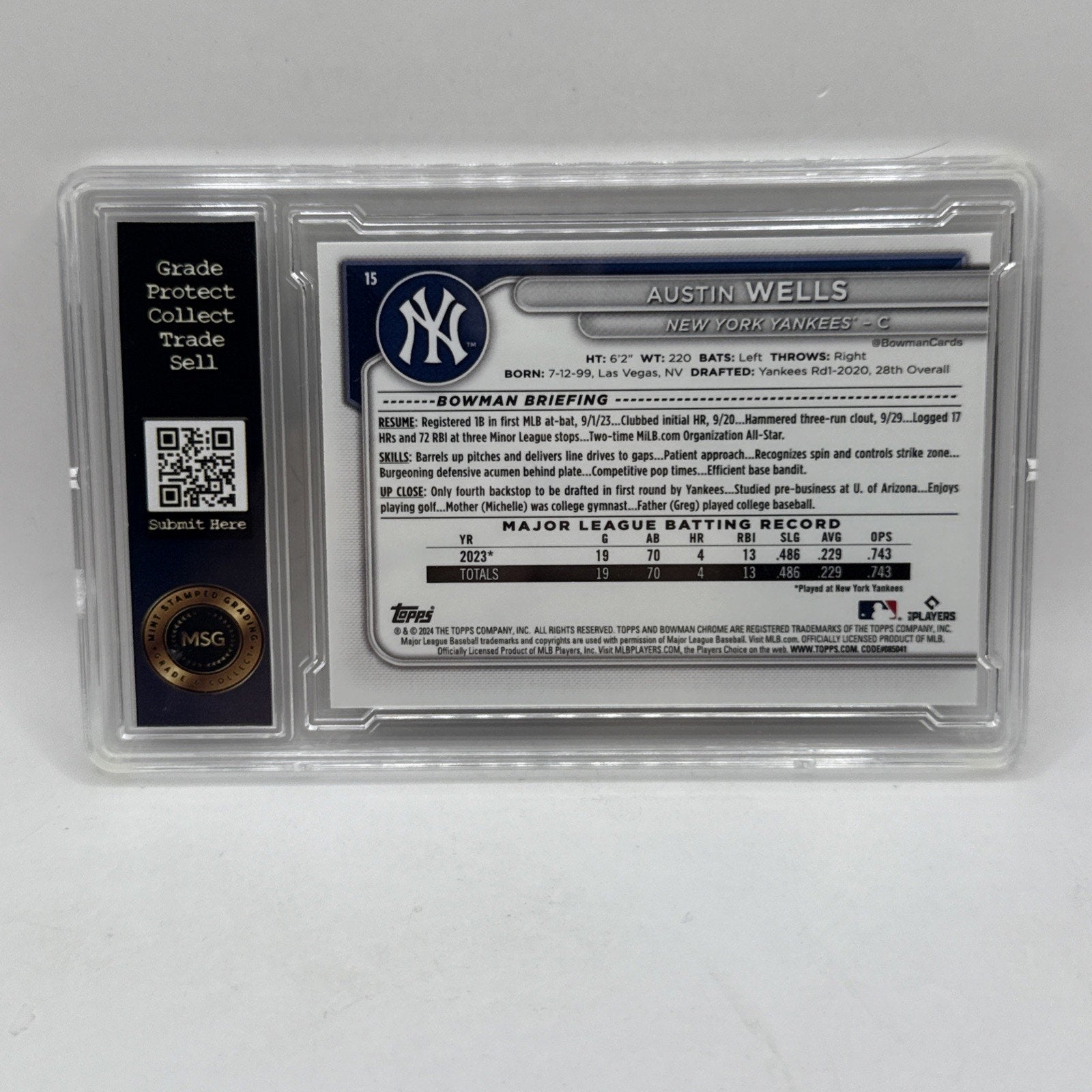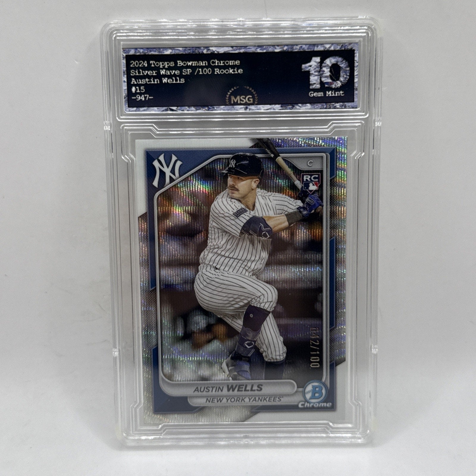 2024 Bowman Chrome AUSTIN WELLS Silver Wave Rookie SP /100 YANKEES Graded 10 Gem