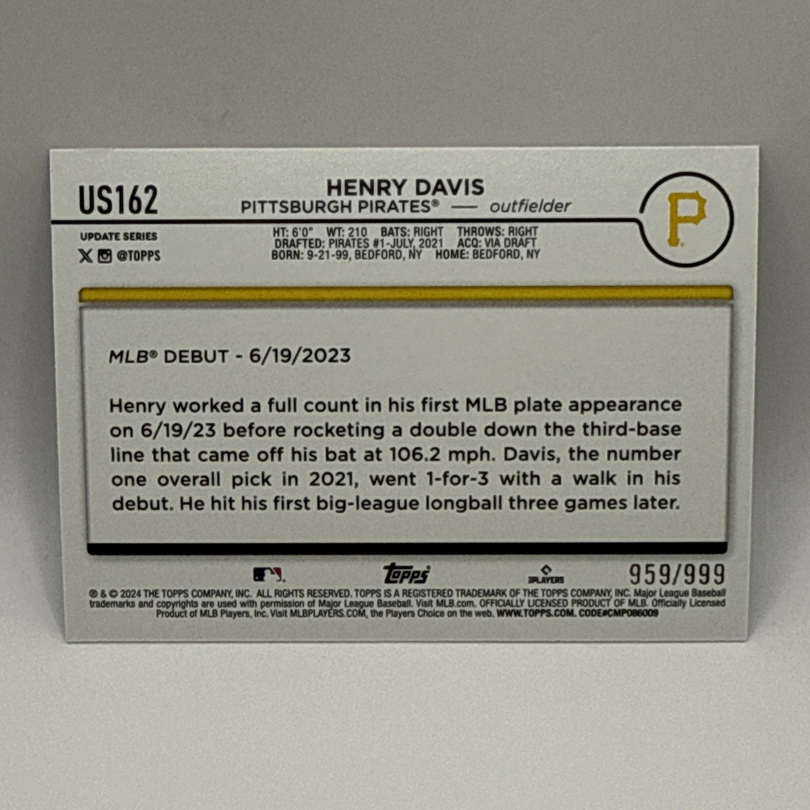 2024 Topps Chrome Update Series Henry Davis Blue Refractor /999 RC Pirates