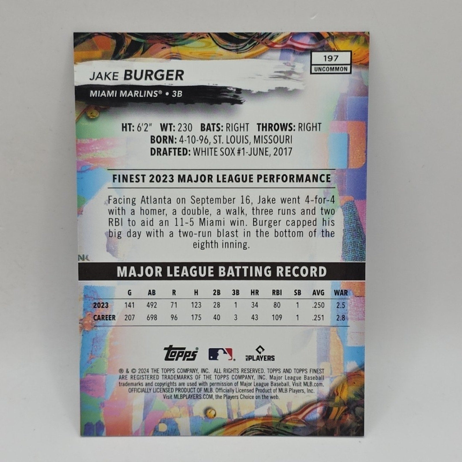2024 Topps Finest JAKE BURGER #197 - SKY Blue Refractor /250 - Miami Marlins