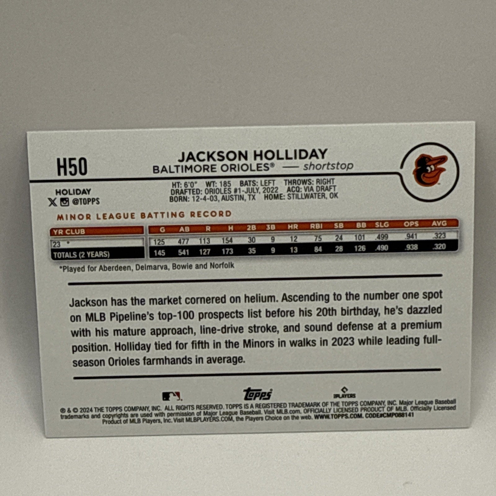 2024 Topps Holiday Jackson Holliday RC Baltimore Orioles Rookie #H50