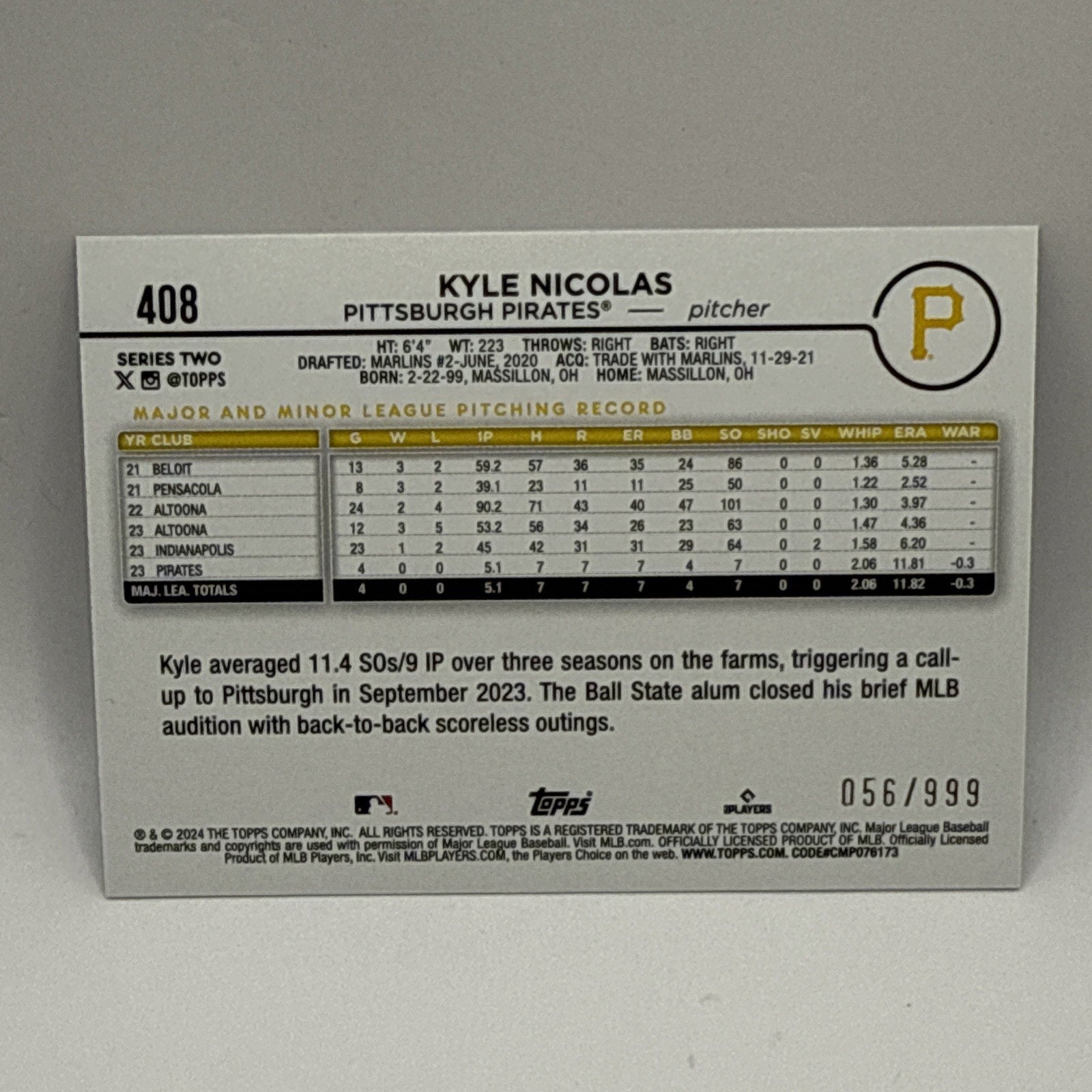 2024 Topps Series 2 - Blue Foil #408 Kyle Nicolas /999 (RC)