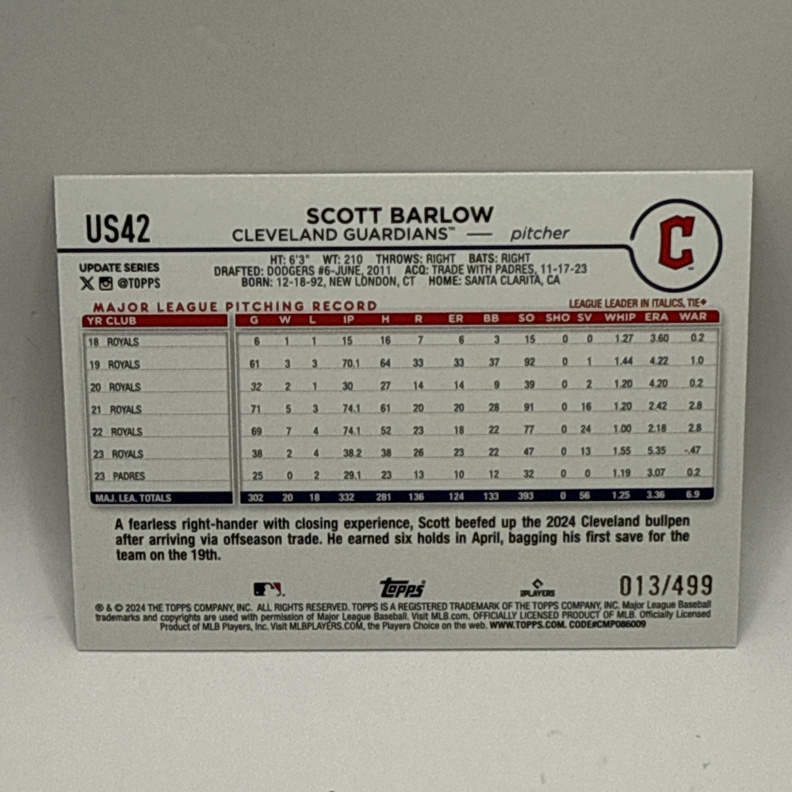 2024 Topps Update Series - Scott Barlow #US42 Green Crackle Foilboard /499 MLB