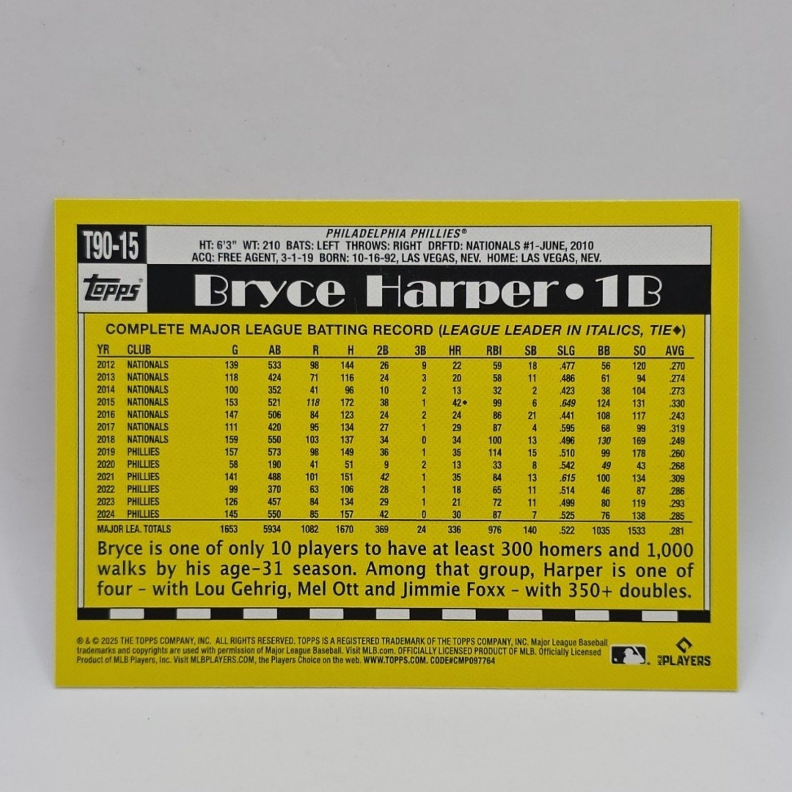2025 Topps Series 1 Bryce Harper 35th Anniversary 1990 #T90-15 Phillies