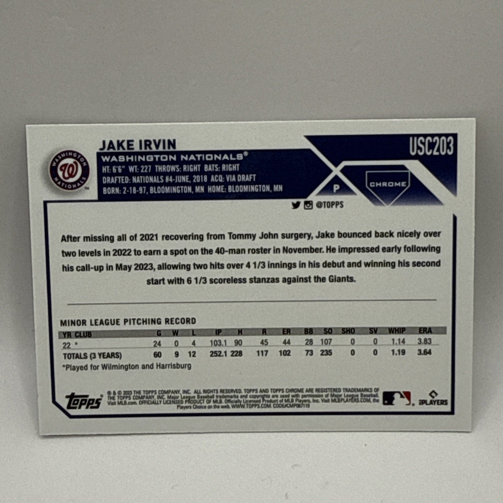 Jake Irvin 2023 Topps Chrome Update Negative Refractor RC #USC203 Nationals