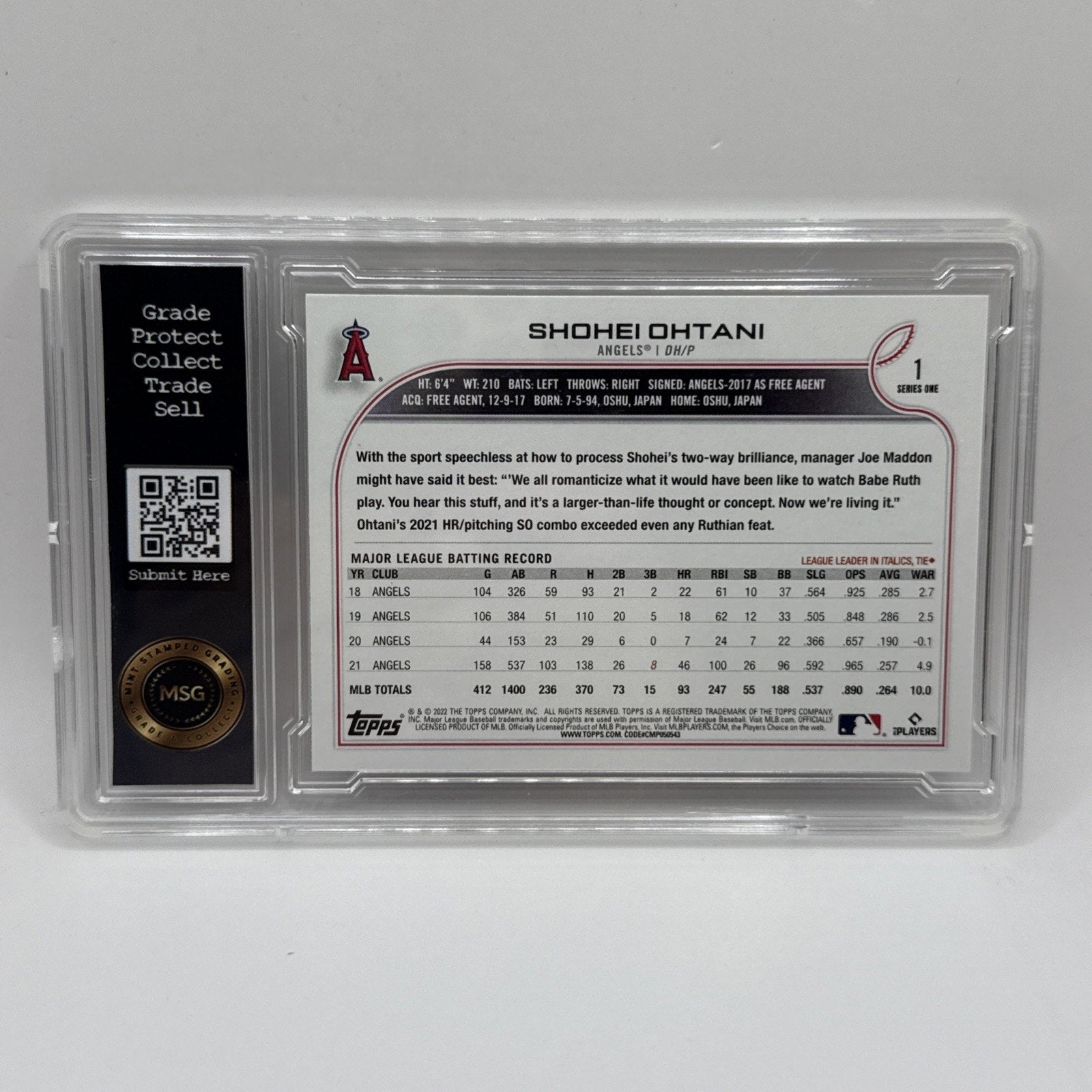 Shohei Ohtani Graded 10 2022 Topps MLB #1 GEM Mint Los Angeles Series One